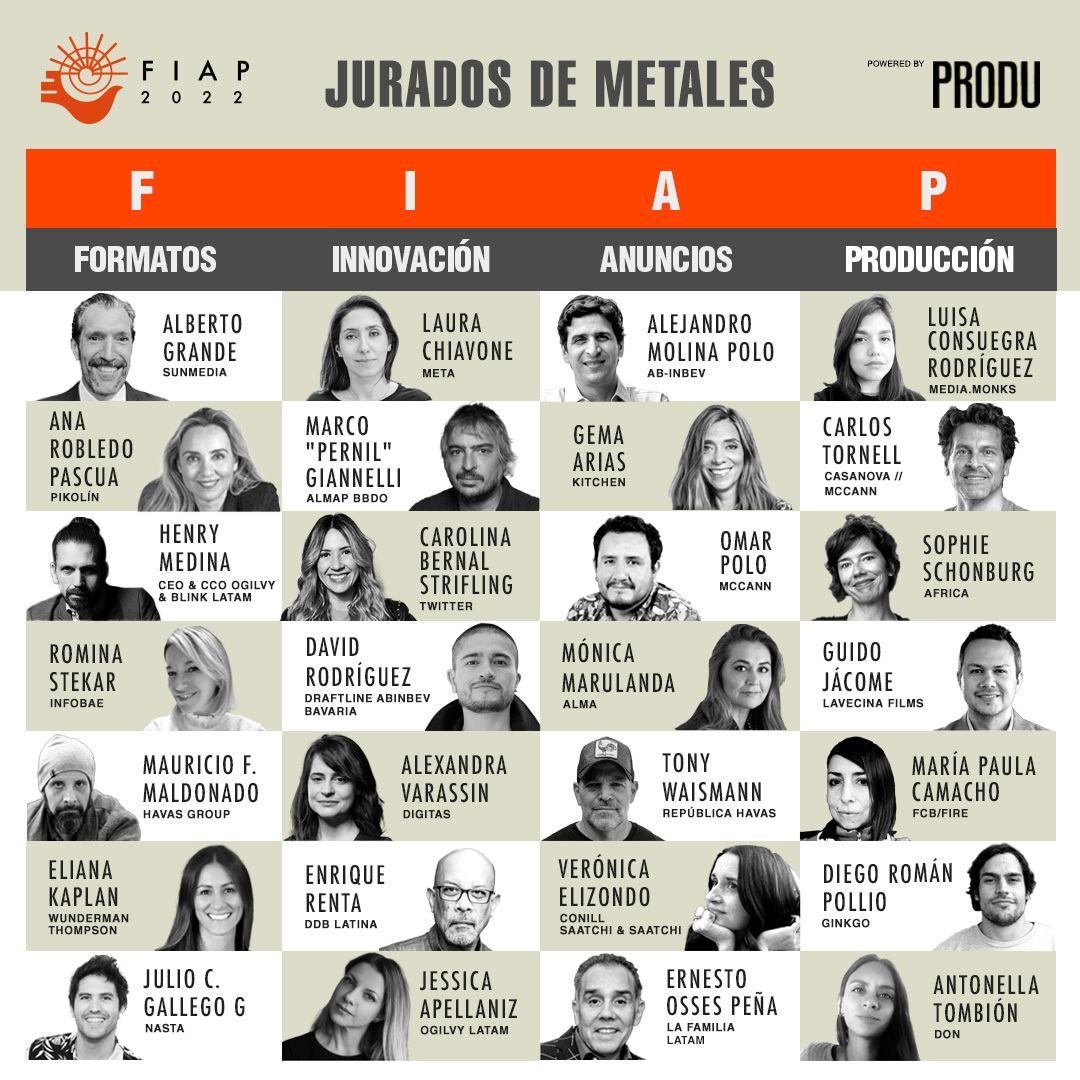 MIAMI, FL — 6 de Julio de 2022 — (NOTICIAS NEWSWIRE) — El Festival Iberoamericano de la Creatividad 2022 (FIAP), Powered By PRODU, reveló los nombres de los 28 miembros del jurado de Metales encargados de decidir junto a los presidentes de cada una de sus categorías asignadas, cuáles serán la piezas galardonadas.